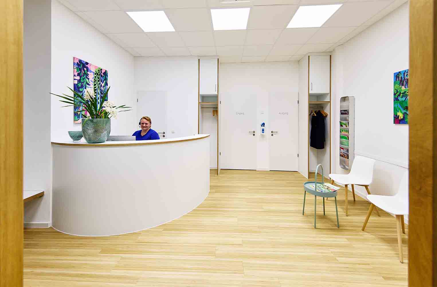 Unsere Praxis befindet sich im 1. Stockwerk direkt am Treppenhaus und Fahrstuhl bei der Sparkasse.